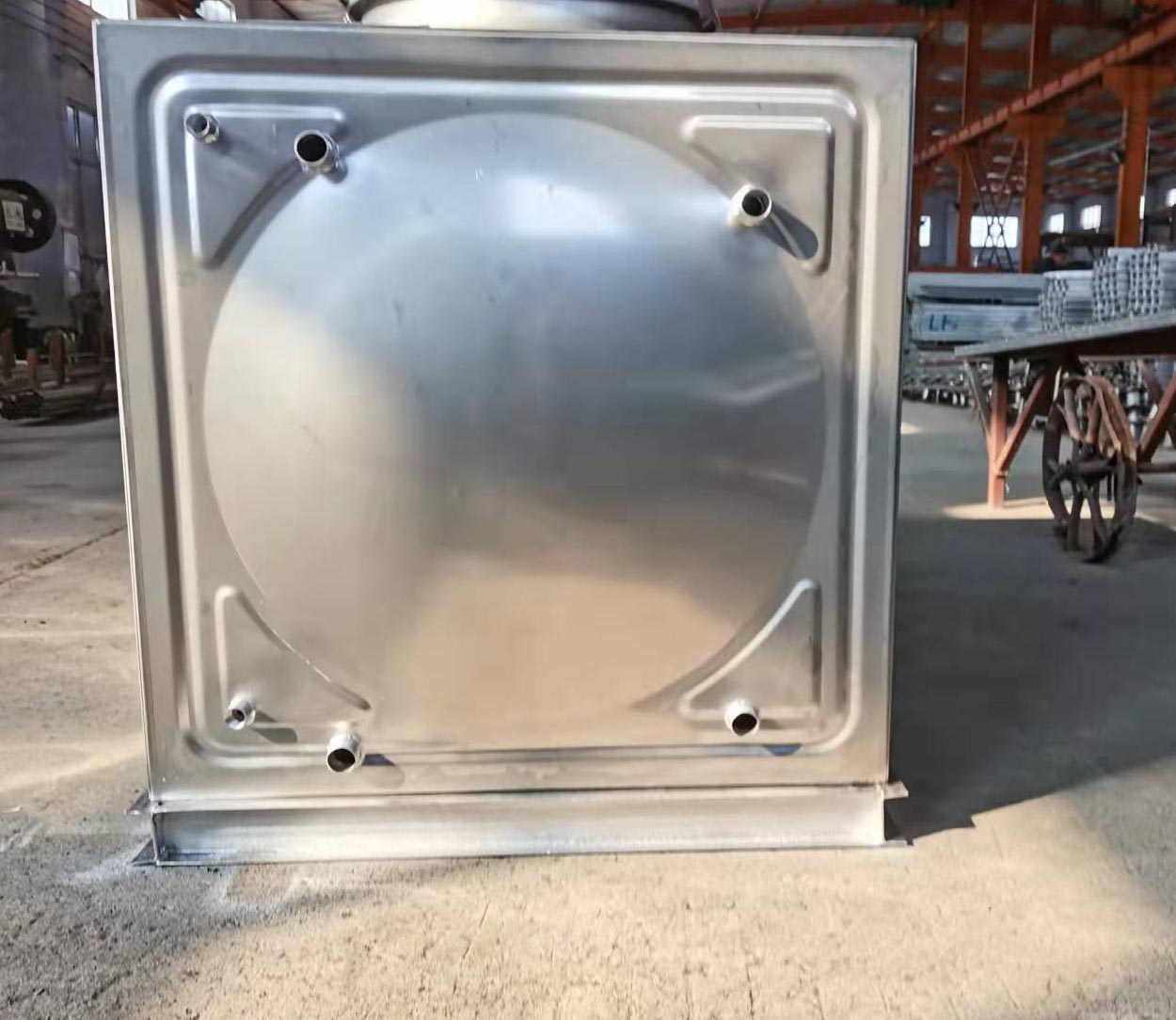 先將不銹鋼板材模壓成一米見方的板塊。