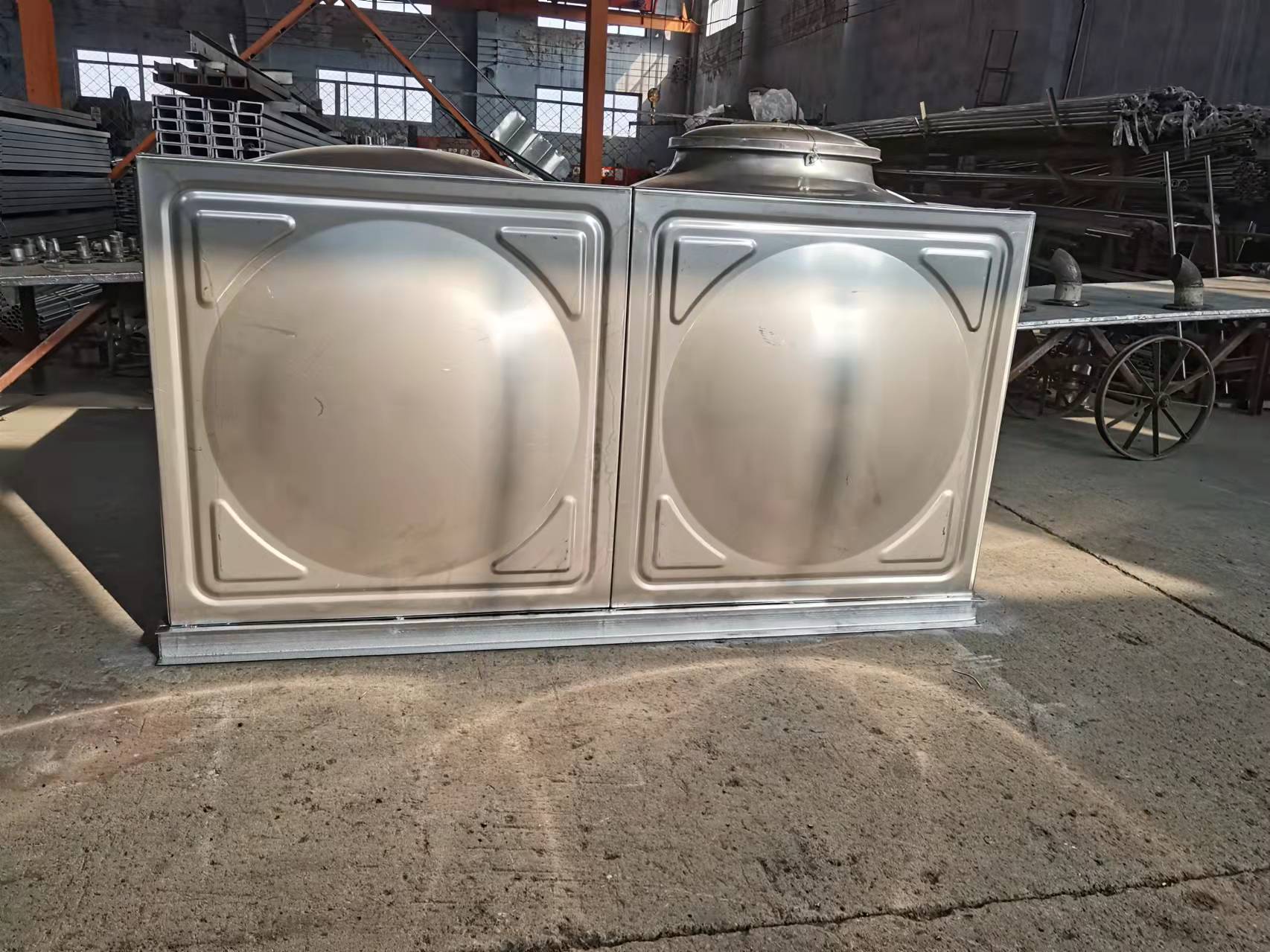 產品特點:一、不銹鋼水箱原材料采用sus304材質,俗稱食品級304。其材質具有極強的任性,能將板塊模壓成任何角度而不變形。 二、不銹鋼焊接式水箱由1*1*1的板塊拼裝焊接而成,其工藝美觀大方,不滲漏不變形。 三、水箱內外皆有爬梯,頂部留有人孔,方便進出清洗,內有拉筋,用于穩固水箱。